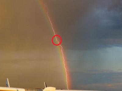 罕见一幕:客机飞过彩虹并被闪电击中