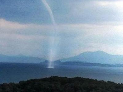 中国游客在希腊旅游胜地拍下一组海上龙卷