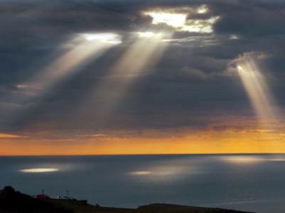 英国摄影师在苏塞克斯比奇角拍摄到天空放射金光的绝美画面 摄影师拍摄到的图...