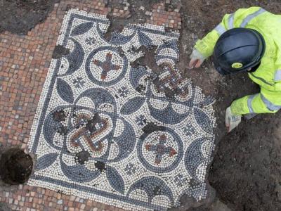 英国伦敦萨瑟克区出土半个多世纪以来面积最大的古罗马镶嵌马赛克画(神秘的地球uux...