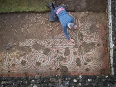 英国格洛斯特郡的切德沃思罗马别墅发现公元5世纪古罗马镶嵌马赛克地板 证黑暗时代未...