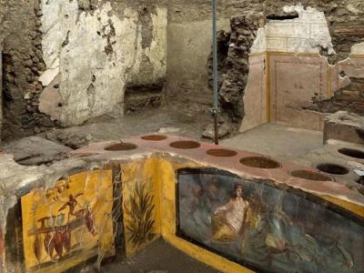 考古学家在公元79年被火山喷发埋葬的庞贝古城发现装有壁画的热食和饮品店(神秘的地...
