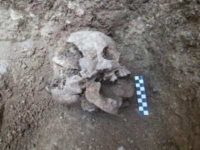 “卢加诺吸血鬼”出土时口中被塞入石块。童尸(左图)口中的石...