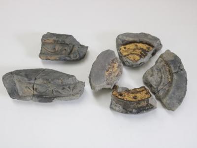 在骏府城遗址出土的丰臣家金箔瓦片。德川家康筑建的骏府城遗址...