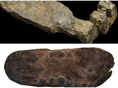 一块哺乳动物头骨化石,牙齿窝里的沉积物,原来是史前蜜蜂筑的巢穴。图片来源:uux...