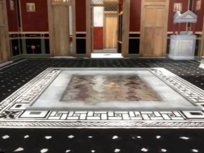 研究人员利用技术重现别墅的原来面貌。 壁炉刻有漂亮的花纹。 水池四周铺满...