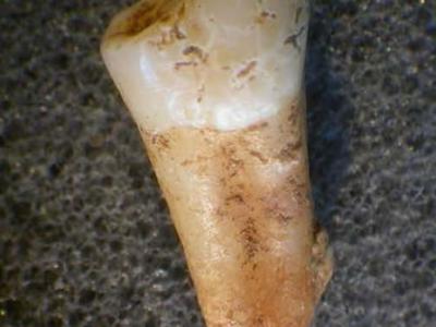 一块哺乳动物头骨化石,牙齿窝里的沉积物,原来是史前蜜蜂筑的巢穴。图片来源:uux...