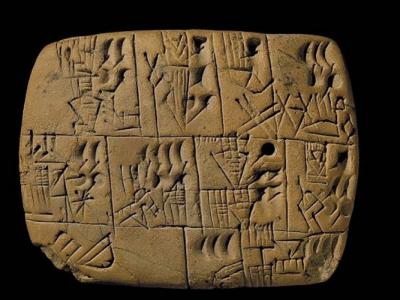泥匾上显示了工人应收取的啤酒酬劳。 泥匾于伊拉克东南部古城乌鲁克被发现。 ...
