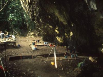 南库克群岛的Mangaia岛Tangatatau岩棚的发掘 人工制品包括一个标志性的玄武岩...