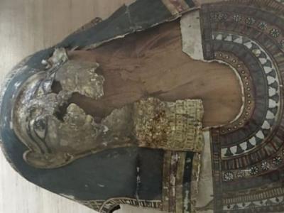木乃伊表层原来剥落得非常严重。 沙赫(左)称修补木乃伊的工序相当复杂。 ...