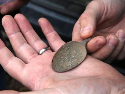 考古团队发现多件历史文物。 专家利用金属仪器探测地面。 斯特佩(图右)相...