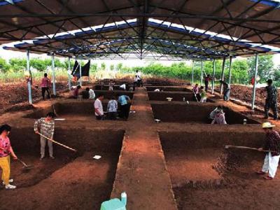 秦岭古人类史前遗迹发掘 龙岗寺遗址第三级阶地发掘现场 龙岗寺遗址第三级阶...