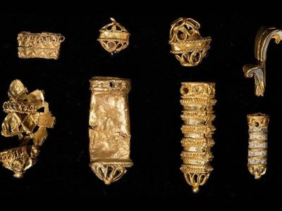 考古学家相信,金饰来自同一件头饰。 金饰在泰晤士河边发现 (神秘的地球报道...