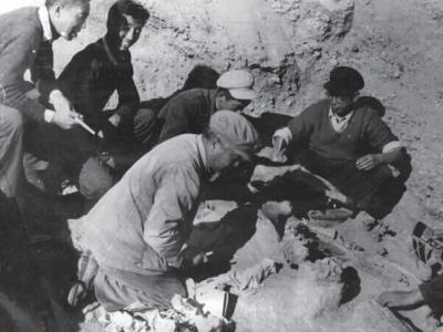 1980年裴文中(右)与盖培(左)在日本札幌考察 北京猿人头盖骨 周口店出土...