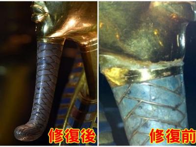 弄断胡子乱用胶水黏合 图坦卡蒙面具终修复