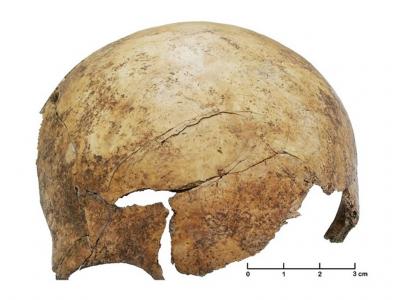 德国法兰克福附近发现7000年前集体墓穴里一个8岁小孩儿的断裂的颅骨 科学家在...