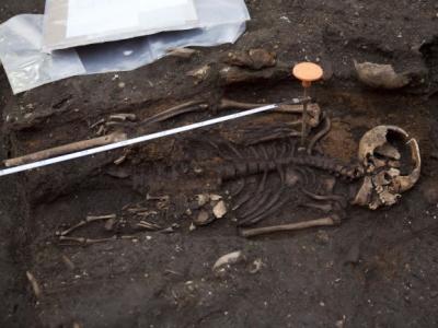 考古学家在拟建车站的墓地遗址进行挖掘 该墓地遗址已有逾400年历史 考古学...