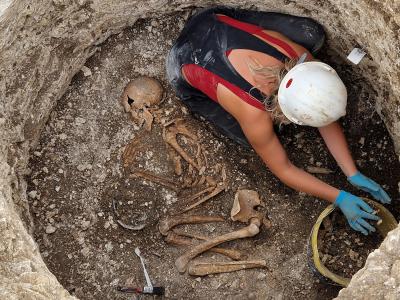 在Winterborne Kingston挖掘铁器时代晚期的杜罗特里亚墓地。来源:uux.cn伯恩茅斯大...