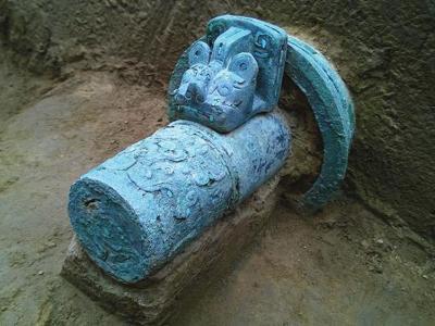 出土的车軎 考古现场 墓葬中出土的青铜器 (神秘的地球报道)据中国社会科...