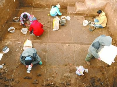 11月19日,工作人员在考古现场进行清理工作。 11月19日,考古工作者在整理出土...