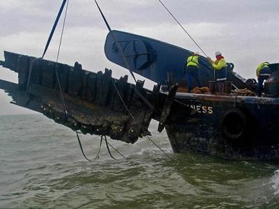 英国泰晤士河发现的400年历史古船遗骸证