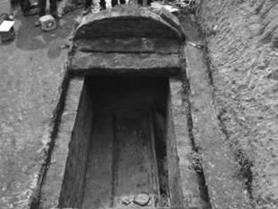 胡夫人墓穴 胡夫人墓中龙泉窑梅瓶 胡夫人霞帔上泪滴形金饰 胡夫人墓穴壁...