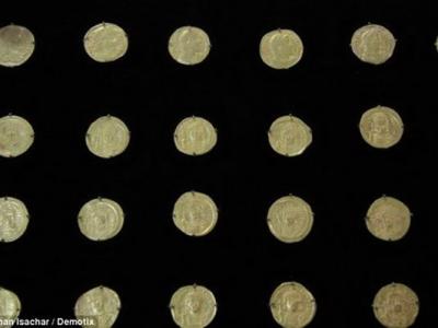 考古学家在耶路撒冷圣殿山附近挖掘发现36枚雕刻着拜占庭帝国图案的金币 希伯莱...