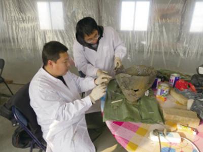 作人员对遗物进行拼对 新闻回放 2012年年中,大连大王山上发现一处青铜时代遗址...