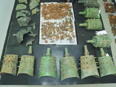 6月18日下午,宜昌在厢涵工程施工过程中发现铜鼎、编钟等文物,施工方立即报告宜...