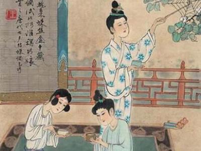 古时“七夕”风俗图,蛛网乞巧。 “纤云弄巧,飞星传恨,银汉迢迢暗渡。金风玉露...