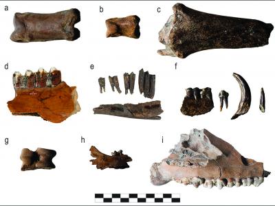 研究中分析了牛(A-d)、羊(e)和猪(f-i)的骨骼。使用稳定同位素分析可以重建这...