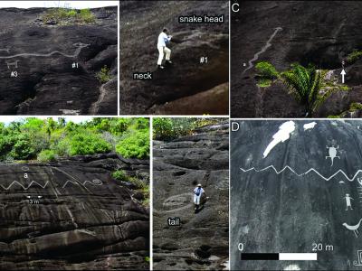 岩石面板上有许多雕刻,包括一条约42米长的蛇。来源:uux.cn作者(神秘的地球uux.c...