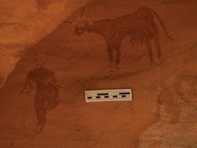 在现在的苏丹,古老的岩石艺术以一个牧民和一头牛为特色。考古学家认为这是牛曾经在...