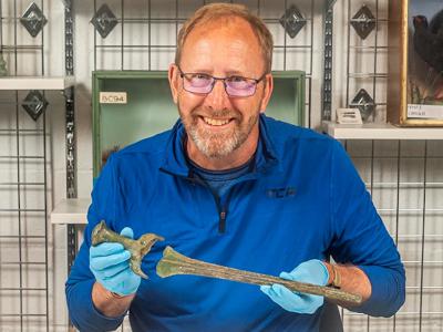 一块哺乳动物头骨化石,牙齿窝里的沉积物,原来是史前蜜蜂筑的巢穴。图片来源:uux...