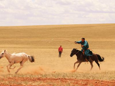 2019年,中国内蒙古,一名牧马人追逐一匹白马。一项新的研究发现,人类大约在4200年...