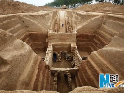 这是位于洛阳邙山的曹休墓发掘现场(5月12日摄)。新华社发(张晓理 摄)  ...