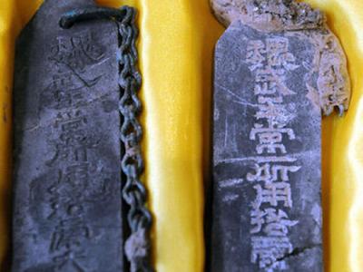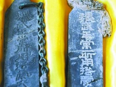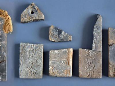 这是考古发掘出土的两块刻有“魏武王”铭文的石牌 2009...