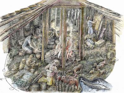 位于英格兰北部靠近哈德良长城的罗马堡垒温多兰达的三世纪浴场和厕所建筑。图片来源...