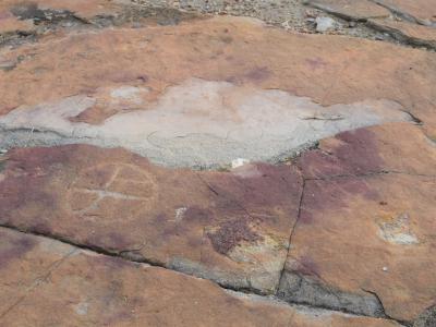 Serrote do Letreiro(“Signpost Hill”)遗址的一些岩画距离恐龙足迹2到4英寸(5...