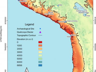 这项研究包括安第斯山脉的中南部和一些地点。等高线出现在海拔500米和3000米处,定...