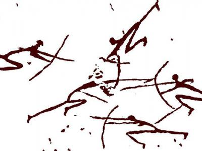 全新世中期的岩画,描绘了西班牙Cueva del Roure地区弓箭手之间的暴力冲突。鸣谢:爱...