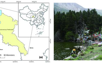 (a) 达尔宗湖地理位置;(b)达尔宗湖边煨桑活动照片 (摄于2020年6月7日)(a), (c), (...
