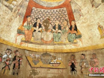 陕西省横山县发现一座元代壁画墓:壁画主体图案为墓主夫妇6人并坐...