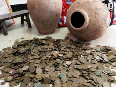 四川古蔺工地挖出12000枚古币