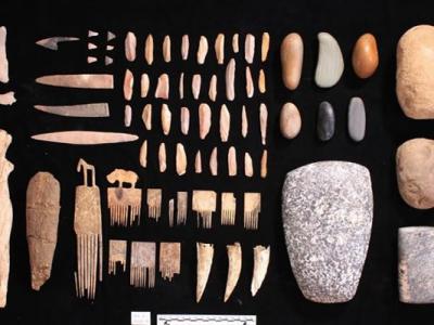 2012年试掘西区第3层发掘现场照片 第5层出土的手镐 第4层出土的尖状器 ...