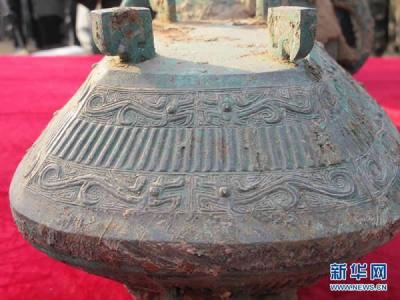 陕西宝鸡石鼓山西周墓成功提取出墓室的一件青铜簠上的对龙纹饰十分清楚 陕西宝...
