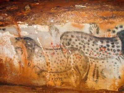 最新研究显示远古洞穴内四分之三壁画出于女性双手 原始壁画中留下的女性手印(...