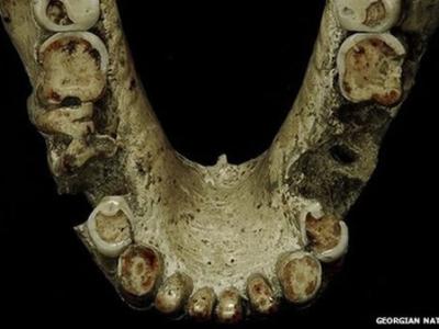 是发现于格鲁吉亚共和国德马尼斯遗址的原始人颌骨 一根牙签能够完全穿过一个圆...