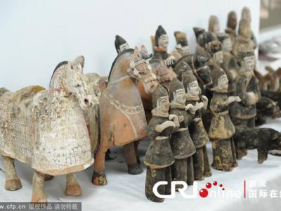 2011年11月28日,西安,清理的部分彩色陶俑。 2011年11月28日,西安,清理的部...