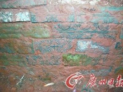 墓地内保存完好的一处古砖墙 河源市和平县林寨镇兴井古村落近日发现一座晋朝古墓...